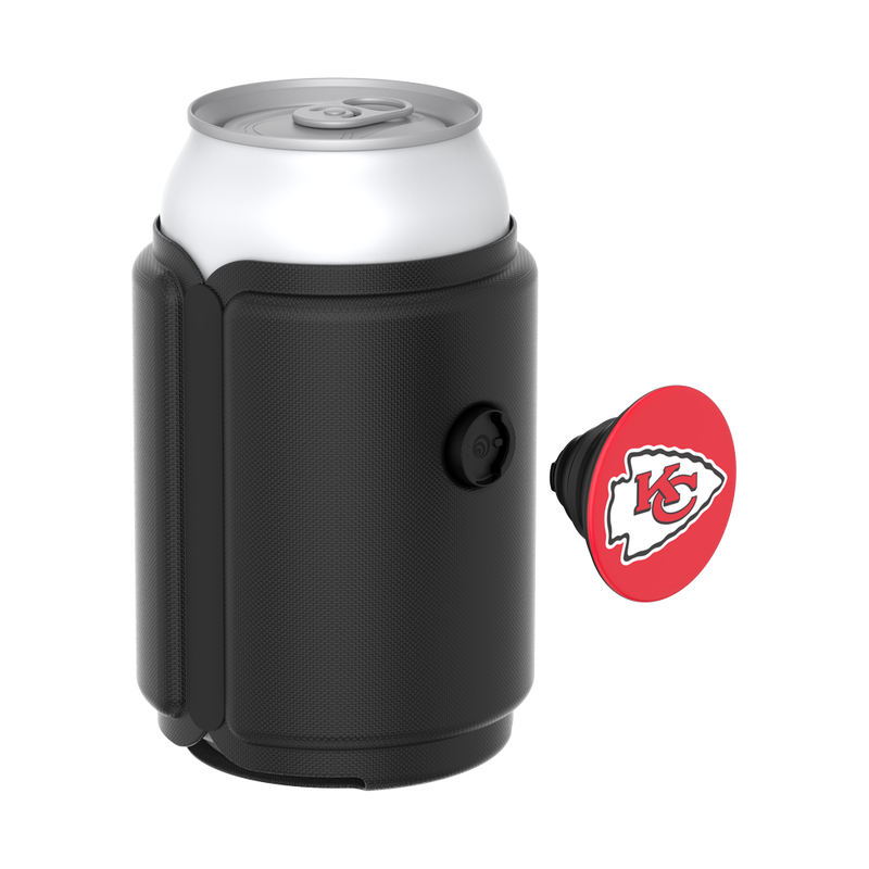 A black can cooler with a silver top and a red Kansas City Chiefs logo on the side. | PopThirst Can Holder Chiefs image number 2 | a2041bd8474c907325600e68e2dde895941461034254561f0b0705550fcfae33 | 000720936736 | 0 | 0 | 18 | 7 | 0 | 0 | |