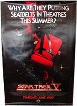 A movie poster for 'Star Trek V: The Final Frontier' with a red backpack in the foreground and a starry space background. The poster has a tagline 'Why are they putting seatbelts in theaters this summer?' and the release date 'STANDALONE JUNE 1999'. | 1989 STAR TREK V Advance Movie POSTER 27x40 Original Vintage 1-Sided Rol... - $34.99 | a448e218cb814406c26965254c23b90d80aeba867d237019caf6b4288cfea0f8 | 000720936963 | 0 | 0 | 43 | 14 | 0 | 0 | |