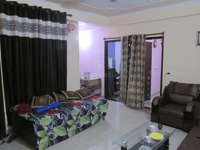 A cozy living room with a beige sofa, a glass coffee table, and a blue and green patterned bedspread on the bed. The room has cream-colored walls, a white ceiling, and a large window with brown curtains. There is a small pink lamp on the side table next to the bed. | Gallery Cover Image of 750 Sq.ft 2 BHK Apartment for buy in Sector 3A for 3200000 | 5829e55ea2f3b1c63d71c1487aba8a16c78a8d33cdaf1b872ecff6a79cc803c6 | 000720936775 | 0 | 0 | 51 | 16 | 0 | 0 | |