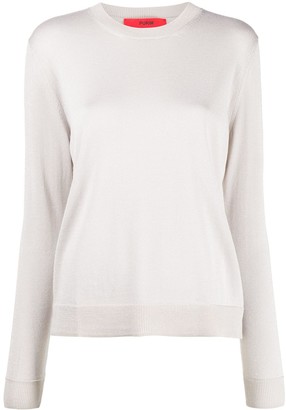 A white, long-sleeved, ribbed knit top with a round neckline and a red tag on the upper left side. | Roberto Collina Metallic Knit Jumper | 2947f7917f5d8d861affe84cffe558581e131843f0b511e9d6575eb3bf8cc0ad | 000720937286 | 0 | 0 | 19 | 5 | 0 | 0 | |