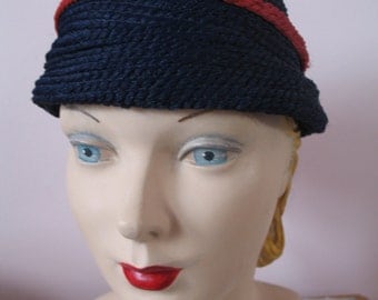 A mannequin with a blue and red striped hat and a red lip is displayed against a pink background. | 1940's Hat, Blue, Red with Tassel Pony Tail, Spunwoven by Everitt | 0fb6035fa6ff274c3b03939d75f4213ff22cc8efb3b855802736edca6b41afa5 | 000720937245 | 0 | 0 | 19 | 11 | 0 | 0 | |