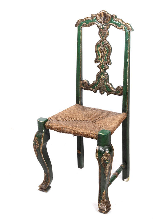 A vintage wooden chair with a woven seat and backrest, featuring intricate carvings and a greenish patina. | Barock Stuhl Hampel Fine Art Auctions | f5671ea6b80487babe29211aa065bd8db5480c0e33548dd4aca96d80d7d36b85 | 000720937876 | 0 | 0 | 17 | 6 | 0 | 0 | |