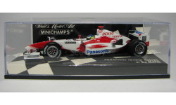 A detailed model of a red and white IndyCar with the number 1 on the side is displayed in a glass case. The model is on a checkered floor, and the case has a black base with the words 'MINI CHAMPIONS' and 'CHAMPIONSHIP' engraved on it. The model is positioned at an angle, showcasing the front and side of the car. | Toyota TF104, Panasonic Toyota Racing, #16, C. Da Matta, Minichamps, 1/43 | 14cd7049be3bfcbd56d3ce5a5e9ff991dca24eb2abf6d3fb7e15519e1d265d86 | 000720938756 | 0 | 0 | 61 | 11 | 0 | 0 | |
