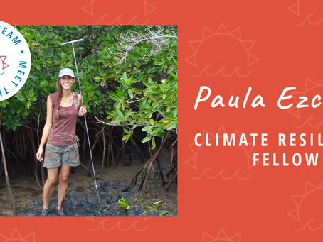 A woman is standing in a mangrove forest, holding a walking stick in her right hand and a camera in her left hand. She is wearing a hat, a brown tank top, and shorts. The background features dense mangrove trees and a muddy riverbank. The image has a warm, orange border with text that reads 'Meet Paula Ezequiel, Climate Resilience Fellow' and 'Team Dream'. | Meet the Alliance Team: Paula Ezcurra | 8c1a860725554d0b49fd9dd93c8651b6bad59c81c96d017c72d0d12c74e15b24 | 000720938763 | 0 | 0 | 64 | 6 | 0 | 0 | |