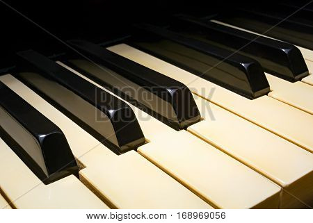 The first image shows a close-up of a piano keyboard with a focus on the black keys. The keys are glossy and have a reflective surface, with the black keys appearing more reflective than the white keys. The piano is well-lit, and the image has a warm tone. In the bottom right corner, there is a watermark with the text 'BIGSTOCK' and a website URL. | Keys of old piano, cozy place, perspective | d51f536d65134fadc42e7887215e8f2e0e3b9c45cb6749c17d13583d1d957cb4 | 000720938729 | 0 | 0 | 65 | 7 | 0 | 0 | |