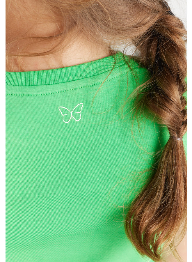 A close-up of a person's upper back and hair, wearing a green t-shirt with a white butterfly design on the left side. The hair is styled in a braid that extends down the back, and the person's face is not visible in the frame. | T-shirt Zala green | 1d28643abe0cc6b054bf6a22ef80ba9fa0bca59f60ac2307f1db548b2b15d79b | 000720939441 | 0 | 0 | 44 | 3 | 0 | 0 | |