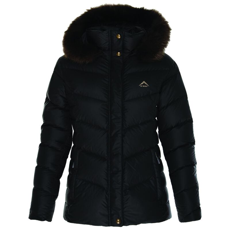 A black winter jacket with a fur-lined hood, zip-up front, and a small logo on the left chest area. | K-Way Women's Elara Down Jacket - black | 22f0204846d3d817ae678d4a62e5fc8e438054df150df6e6f294ec8d1e7f8b60 | 000720939581 | 0 | 0 | 19 | 7 | 0 | 0 | |