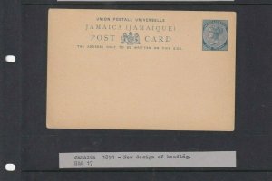A vintage Jamaican postcard with a stamp featuring a portrait of a woman, dated 1967. The postcard is part of a collection, with a binder holding it in place. The postcard has a yellowish hue and is placed on a black background. | JAMAICA POSTAL STATIONARY CARDS UNUSED 1D 1891 | 5e13c54d1c1b6f395949e6d69a5f4f344ff437c1c30fc476bc6190cdf7de3eb8 | 000720940104 | 0 | 0 | 42 | 7 | 0 | 0 | |