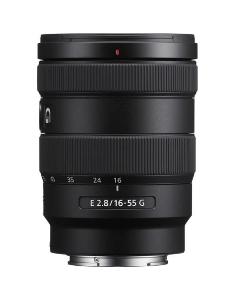 A black prime lens with a focal length of 2.8/16-56mm is displayed against a white background. The lens has a silver ring around the front element and a black ring around the rear element. The lens has a silver mount and is labeled 'E 2.8/16-56 G'. | Sony Sony E 16-55mm f/2.8 G Lens | 37f28955abad87782e9f5d7e5219259183ec67cb18940744b0c2a209ae8ae1f8 | 000720942215 | 0 | 0 | 46 | 7 | 0 | 0 | |