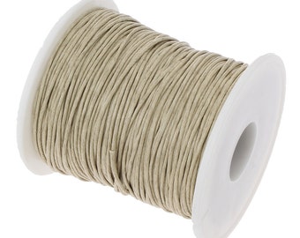 A close-up image of a beige spool of thread with a white core. The thread is tightly wound and appears to be a type of yarn or twine. The spool is centered in the frame, and the background is a plain, light color. | Waxed Cotton Cord : 10 feet Light Khaki Tan 1mm Waxed Cord String | Bracelet Cord -- 90701-7.10 | cd292f374443de60dc553532fffc874d9a44d767a4903d1d303470909f01dbd3 | 000720942380 | 0 | 0 | 43 | 18 | 0 | 0 | |