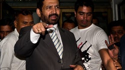 A group of men is standing together, with one man in the foreground pointing his finger towards the camera. He is wearing a dark suit with a white shirt and a striped tie. The man is also wearing a wristwatch on his left wrist. Behind him, there are other men in the background, some of whom are wearing ties. The setting appears to be indoors, possibly in a formal or professional environment. | Suresh Kalmadi, Accused In CWG Scam, Declines IOA's Life Presidency | f1bddd2729c6dcfb73cccc1d497c9d2a4842e58dffab1ad32c7f4d2d63a07256 | 000720942496 | 0 | 0 | 72 | 10 | 0 | 0 | |