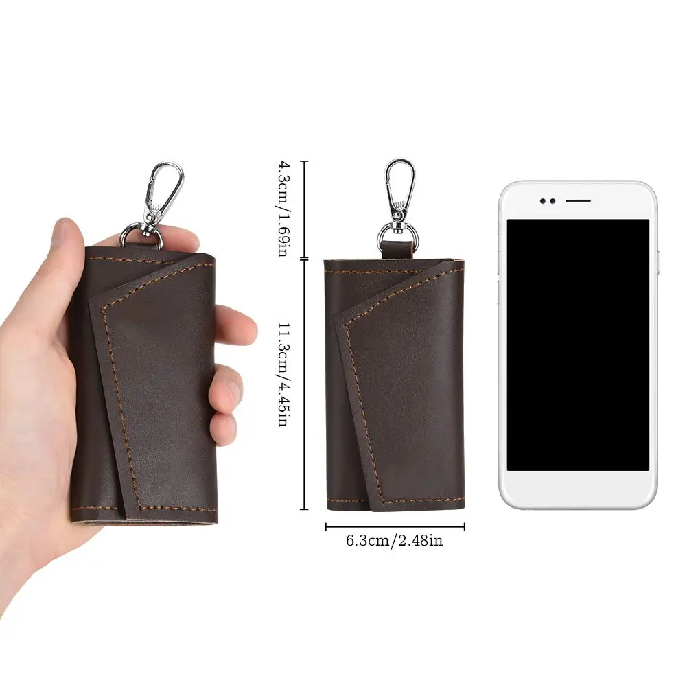 A hand holding a smartphone with a wallet attached to it. The wallet is brown with a strap and measures 6.5 cm in length and 9.5 cm in width. The smartphone is white and has a black screen. | \n2020 New Design Multi Function Wallet Bag Key Case Cash Purse Keyring Pouch Mini Leather Key Holder Wallet for men women | 86f049634422596527bf27de5b78fdf510f44c22fbc19c8da531187e66a32412 | 000720942523 | 0 | 0 | 38 | 21 | 0 | 0 | |