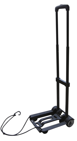 A black, modern, wheeled luggage stand with a flat surface and a curved handle is displayed against a white background. | Chariot pliable, 45 kg | 8e328aa3be8e59ad94486f3392befd9403d273a4715fcb7d6f78d97a6d1d44b2 | 000910697612 | 0 | 0 | 20 | 4 | 0 | 0 | |