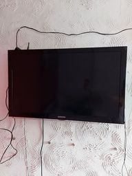 A modern flat-screen television is mounted on a wall above a patterned wallpaper. The television is turned off, displaying a black screen. The wall has a textured pattern with a mix of light and dark shades, and the television is connected to the wall by cables that are visible on the left side of the screen. | TV Samsung 32" | 9682df7ba1e201262c520326400dc0125c5fbc063a15cc46f5502a993f37e5ac | 000910697535 | 0 | 0 | 56 | 3 | 0 | 0 | |