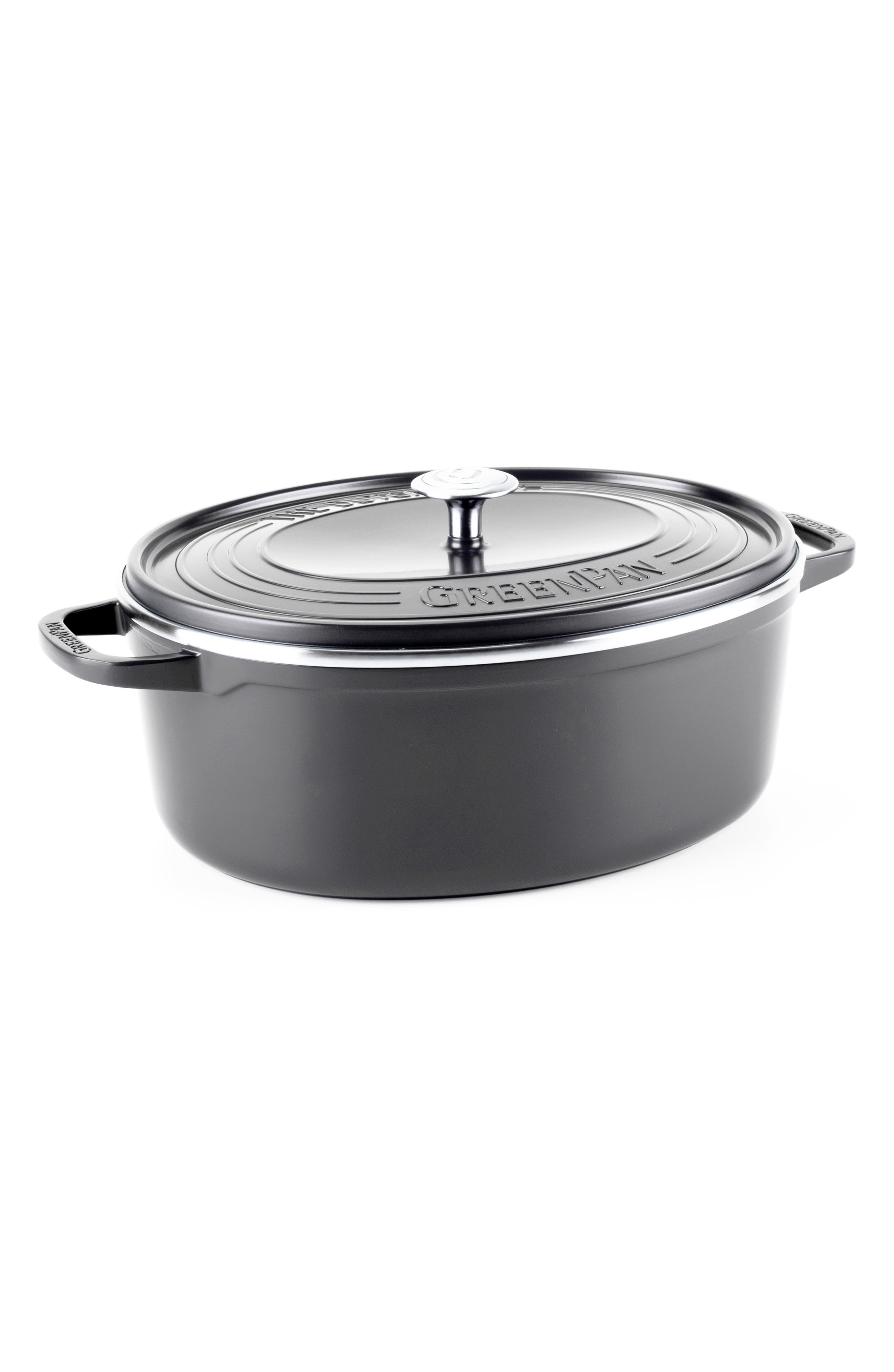 A black, round, non-stick frying pan with a smooth surface and a black handle on the side. | GREENPAN,\n SimmerLite 6 1/2-Quart Cast Ceramic Nonstick Dutch Oven with Lid,\n Main thumbnail 1, color,\n SLATE GREY | 574d3c2676726ffd8a04def07ce5d85b7c7e24ff0099da42908e46c2070877cf | 000910697998 | 0 | 0 | 17 | 17 | 0 | 0 | |
