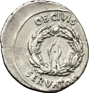 A close-up image of a silver coin with intricate designs. The coin features a wreath-like border with a central circular motif, surrounded by the words 'OB CIVIS SERVATOS' and 'SERVATOS' at the bottom. The coin has a textured surface with a slightly worn appearance, and it is set against a white background. | Reverse image of coin 249 | 2df4d5c65b8b5d722d8212f7134cabf1fe37aafe717063647d770d7d5c63c0c5 | 000910697973 | 0 | 0 | 52 | 5 | 0 | 0 | |