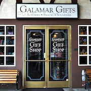 The first image shows the storefront of a shop called 'Galamar Gifts' with a sign above the entrance. The sign has a decorative border and lists various items such as 'Sundries', 'Snacks', 'Savories', and 'Souvenirs'. The entrance is flanked by two large glass doors with a decorative frame, and the doors are closed. The shop's interior is visible through the glass, showing shelves with items and a wooden bench outside the shop. | Gift Shop | b630b78be3ea035474966a7816492f6c8127fc1863803d9e6af533d29d1dd8d6 | 000910697993 | 0 | 0 | 72 | 2 | 0 | 0 | |