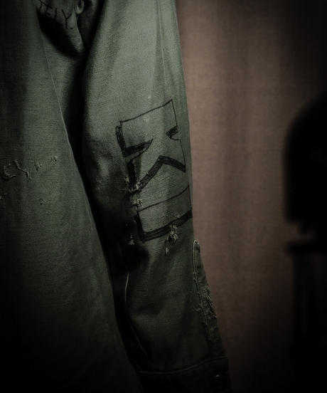 A close-up of a green jacket with a patch on the left side. The patch has a white letter 'K' in the center, surrounded by a black border. The jacket appears to be made of a thick, textured material, and the patch is slightly worn, with some fraying around the edges. The background is dark, which makes the jacket and patch stand out. | KIYOHARU \xc3\x97 RESURRECTION Utility Shirt #4 | 94f645dff3982ffdc1b07d9cbc8d16dc661c1a35f20dd17ca56fa84c7ec0ee41 | 000910699041 | 0 | 0 | 63 | 6 | 0 | 0 | |