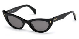 A pair of black sunglasses with a gold logo on the right temple and a gold rivet on the left temple. The lenses are dark grey, and the frame is black with a curved shape. The sunglasses are placed against a white background. | Just Cavalli JC 777 S | ad608835145d201255604ba343950c8c125c0d04b924fc97df64e84cc2a172ed | 001065732066 | 0 | 0 | 43 | 5 | 0 | 0 | |