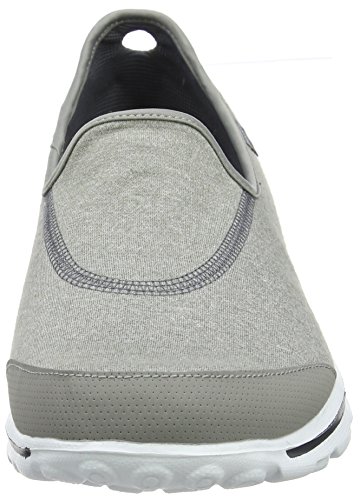 A close-up image of a single sneaker with a textured upper in a light grey color. The sneaker features a white sole with a black line running along the edge. The tongue of the sneaker is grey with a black logo on the top left side. The sneaker is positioned against a white background. | Skechers Go Walk - Zapatos Mujer Gris (Gry) | d3206b505cccde988376edc6ae56fbed981d3dadf1f8d41ff2d355f12070ef11 | 001065732283 | 0 | 0 | 54 | 8 | 0 | 0 | |