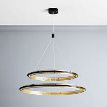 A modern, three-tiered chandelier with a sleek design, featuring three circular rings with a metallic finish and a black ceiling mount. The chandelier is suspended from a white ceiling against a light grey wall. | LED Hoop Chandelier - Double (Antique Bronze) | 04ae5f640b64d14e2cfc1d49872ff9a4f9b900cc85101b2068f86ad82d4a691f | 001065732189 | 0 | 0 | 34 | 7 | 0 | 0 | |