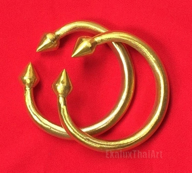 A golden ring with three golden spikes on top is displayed against a red background. | ankle bracelet bangles lotus bud brass Thai dancing anklet Thai dancer costume | e9e24db4db85a4e94b7f06b90985ed07ded61f6dc1568bc06993e053731d02f7 | 001065732273 | 0 | 0 | 15 | 12 | 0 | 0 | |