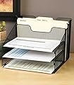 A black metal file organizer with two compartments is on a wooden desk. The top compartment has a label that reads 'TO DO' and the bottom compartment has a label that reads 'DONE'. Both compartments are empty. | VANRA Metal Mesh Desktop File Sorter Organizer Desk Tray Organize with 3 Letter Trays and 2 Vertical Upright Sections | b7d8762fda19c29fd3cee3c6fcf229ea7d35ba1d7fe2aa915bfa733043da3eb4 | 001065732376 | 0 | 0 | 37 | 19 | 0 | 0 | |