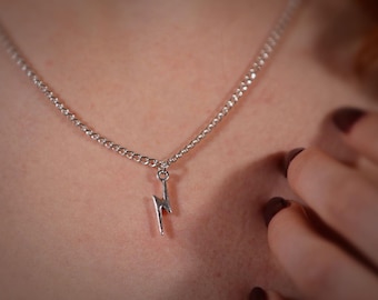 A close-up of a person's neck and hand, showcasing a silver chain with a small lightning bolt pendant. The person has red hair and is wearing a dark nail polish on their fingernails. | Lightening bolt necklace | 8e8871dad34481c0ce58b36e69575784b15318b54d8c5d5cb1f48d087d030ef9 | 001065732227 | 0 | 0 | 33 | 3 | 0 | 0 | |
