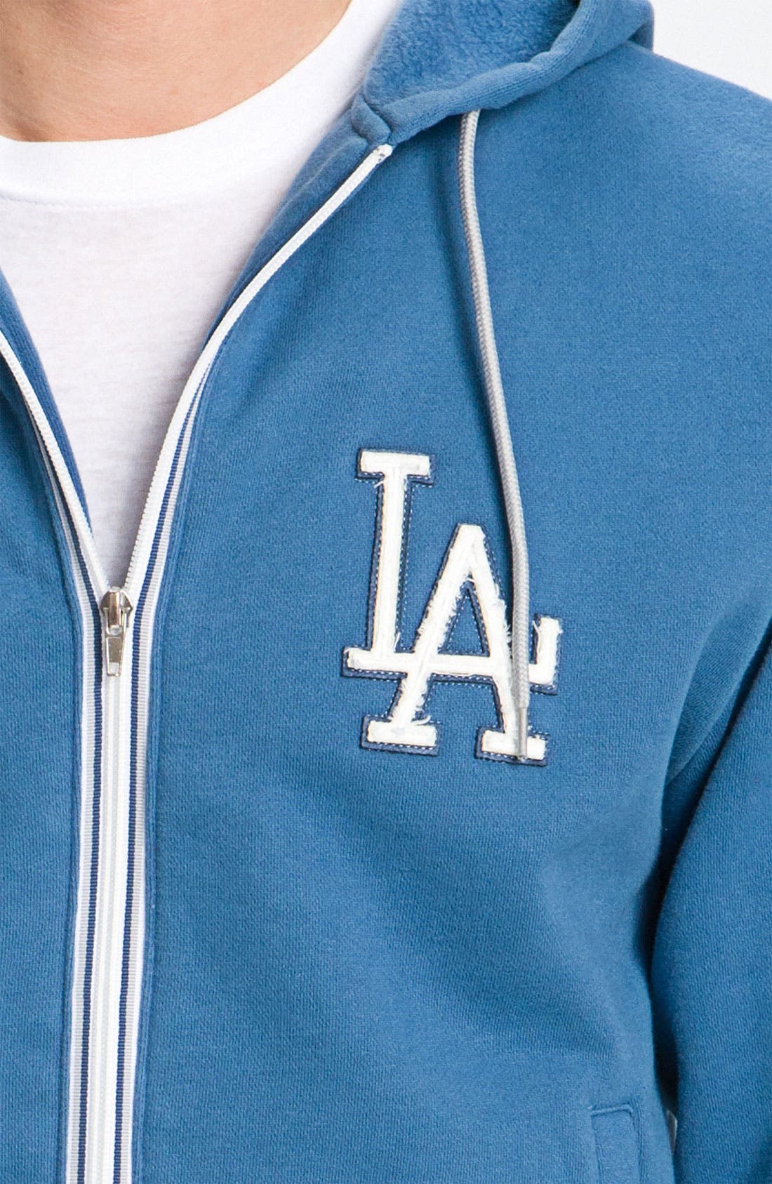 A person is wearing a blue hoodie with a white LA logo on the front. | 'Los Angeles Dodgers' Hoodie,\n Alternate thumbnail 3, color,\n 401 | ac60e4ed6c39b183fb5074b8ab8fca1a1164a56759c48258f1112bfa360ee8c9 | 001065732539 | 0 | 0 | 15 | 9 | 0 | 0 | |