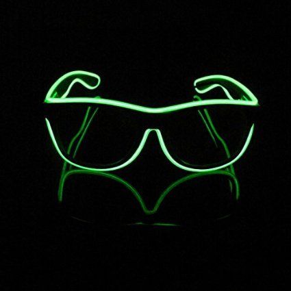 A pair of neon green sunglasses with a reflective surface is placed on a reflective surface. The sunglasses have a distinctive shape with curved temples and a prominent nose bridge. The background is dark, and the image has a watermark at the bottom right corner. | Glow Sun Glasses Led DJ Bright Light Safety Light Up Multicolor Frame Voice control led flashing glasses | d97750329bb86023844bd13c3f67f044af91f414e8b6e11406413e7cffe8ff67 | 001065732367 | 0 | 0 | 45 | 17 | 0 | 0 | |