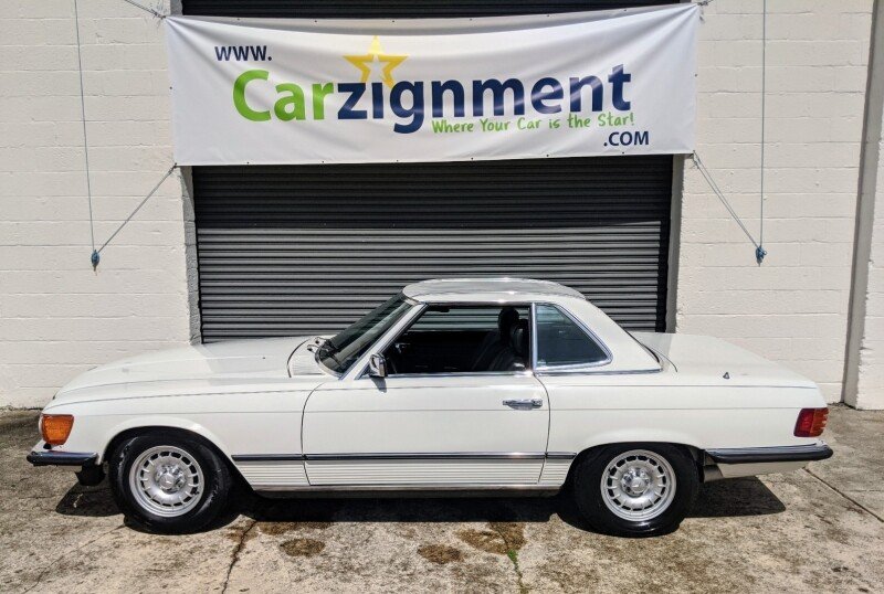 A white vintage car is parked in front of a garage with a sign that reads 'CARZIGNMENT'. The car has a classic design with a rounded body, chrome detailing, and wire wheels. The garage door is closed, and there is a blue rope tied to the door handle. | 1984 Mercedes-Benz 380SL for sale 101375524 | f1466b4121a776af45bea7eb40117c72c2bfbd2b13d491f9060320788c749f29 | 001065733019 | 0 | 0 | 48 | 6 | 0 | 0 | |