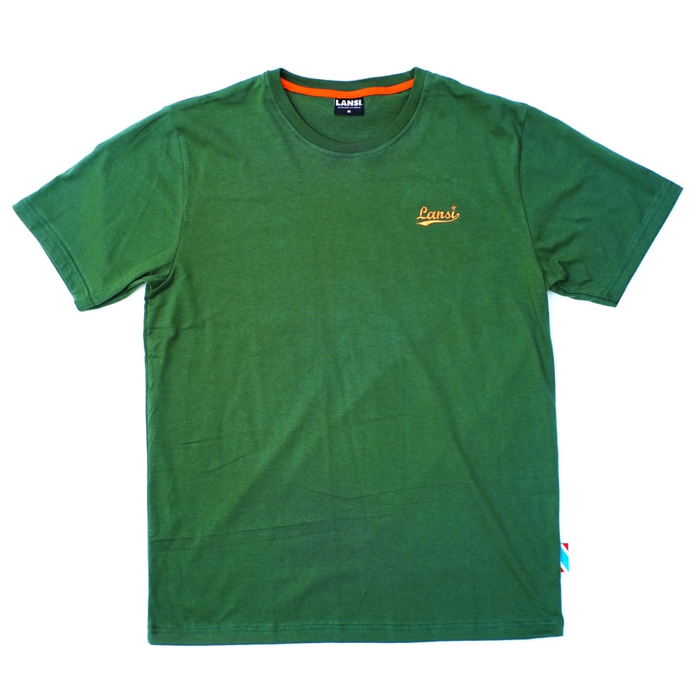 A green t-shirt with a logo on the front is displayed against a white background. The t-shirt has a round neckline and short sleeves. The logo is centered on the chest area and features the word 'LUNI' in orange capital letters. There is a small tag attached to the bottom left side of the t-shirt. | Image of LANSI Stitched Tee \xe2\x80\x94 "Michelangelo" | 3c49b4ff2f5910b728b03ff065f2286420825ce4ccffdaeb4dc80396a7359c16 | 001065733097 | 0 | 0 | 55 | 7 | 0 | 0 | |