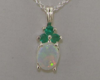A silver necklace with a pendant featuring a large, iridescent opal surrounded by smaller green gemstones. | Luxury Small Pendant, Solid 925 Sterling Silver Natural Colorful Opal & Emerald Accent Contemporary Pendant Necklace - Made in England | f364028d06cba134c4d05db2ebd2f9cfe10677d545ba203ca1ced0b8a3c1ab27 | 001065732984 | 0 | 0 | 16 | 20 | 0 | 0 | |