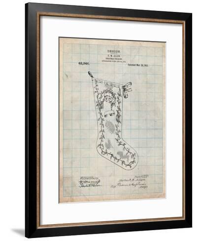 A vintage-style illustration of a Christmas stocking is framed and displayed. The stocking is adorned with intricate patterns and a butterfly design. The illustration is presented in a sepia tone, giving it an aged appearance. The frame is black with a simple design, and the overall presentation has a nostalgic feel. | Christmas Stocking 1912 Patent-Cole Borders-Framed Art Print | ae80cdbfad2b5044ccf7789b3669acbaaf1379e019e4c01ea4986257697397a3 | 001065732994 | 0 | 0 | 51 | 7 | 0 | 0 | |