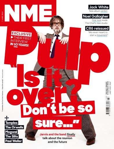 The cover of NME magazine features a man with glasses and a beard, wearing a suit and tie, with the title 'Pulp Is It Over? Don't Be So Sure...' in large, bold letters. The image is overlaid with red and white text and graphics, and there are several other names and words scattered around the cover. | NME Preview | 061509aba23adb0446300be822b25fc3164bdc66f1b43782292ad89c9c2e1c4b | 001065733462 | 0 | 0 | 56 | 2 | 0 | 0 | |