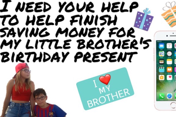 A collage of images and text with a theme of helping to finish saving money for a little brother's birthday present. The collage includes a girl and a boy, both wearing glasses, with the girl wearing a red tank top and the boy in a blue shirt. There are various elements such as a smartphone, a 'I love my brother' stick... | Fundraiser By Harmony Russell My Little Brothers Present | 9da1cca19dd01f189fe0e3b11bff9085d9038bc9ec5555afd201679d6596f52b | 001065733467 | 0 | 0 | 78 | 8 | 0 | 0 | |