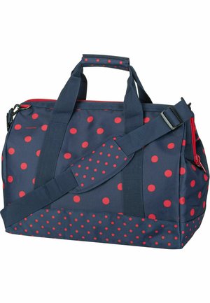 A blue duffel bag with red polka dots is displayed against a white background. The bag has a zipper closure, two shoulder straps, and a handle on top. The polka dots are evenly spaced and cover the entire surface of the bag. | ALLROUNDER - Weekend bag - mixed dots red | bf22d05e81537dc255d2a0c3f9b8f5aaad1428a8966eb6814996b02e7930d607 | 001065733585 | 0 | 0 | 42 | 8 | 0 | 0 | |