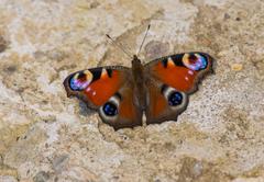 A close-up image of a butterfly with orange and black wings, featuring eye-like patterns on the wings, resting on a textured surface. | Butterfly European Peacock (Aglais io) Stock Photos | 40e446ab686dcda749eb38cf1176add90b013e5f6a17f4dff2c8920ceb571549 | 001065733993 | 0 | 0 | 22 | 7 | 0 | 0 | |