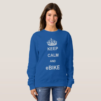 A woman is wearing a blue sweatshirt with the phrase 'Keep Calm and E-Bike' printed on it. | "Keep calm and eBike" custom sweat shirts | 1588190b67e94fc35dad0594dfd3624dce0f34b49b852c5db693d75464a2f394 | 001065733914 | 0 | 0 | 17 | 7 | 0 | 0 | |