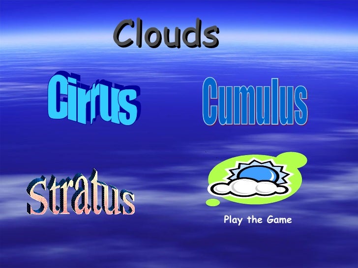 The second image is a stylized version of the first, with the same four clouds and text, but with a more artistic and playful appearance. The clouds are now depicted with a more pronounced three-dimensional effect, and the text has been altered to include a 'Play the Game' message at the bottom. The color scheme is mor... | Clouds Play the Game Cirrus Cumulus Stratus | 4c351b83fa5c4fd5c6e1abd7bc6be5a199bb64167c444194b729224783c13321 | 001065734162 | 0 | 0 | 88 | 7 | 0 | 0 | |