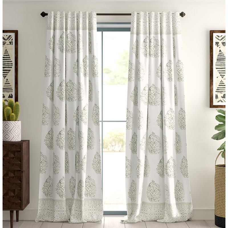 A room with white walls and a large window with two white curtains with a floral pattern. The curtains are partially drawn, and the window shows a view of a garden with greenery. There is a wooden sideboard with a white vase and green plants on top, and a framed artwork on the wall to the left of the window. The floor ... | Mistana Stephany Nature Floral Room Darkening Rod Pocket | 8d677804f124da0be33f97d210f0b8b9c11db4d933b02f7791d564226b32fa3a | 001065734205 | 0 | 0 | 77 | 8 | 0 | 0 | |