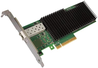 A close-up image of a computer graphics card with a green PCB and a black heat sink. The card has several connectors and a small green sticker with the text 'NVIDIA' on it. The heat sink has a dense array of small holes, and the card is mounted on a white background. | Intel Ethernet Converged Network Adapter XXV710-DA1 | 7acfaff4b9dccb822f254418db88fa1df15164822476b229a1aad65f1697399a | 001065734287 | 0 | 0 | 52 | 6 | 0 | 0 | |