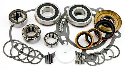 A collection of various car parts is spread out on a white background. The parts include multiple types of bearings, a timing belt, a piston, a piston ring, a cylinder head, and other engine components. The arrangement of the parts suggests a disassembled engine, with the bearings and other components laid out in a way... | Transparts Warehouse BK235B GM NV3500 3rd Design Transmission Rebuild Kit | c132b19af64e976f0fcf22dd23f1a174a29b64e2841339f040bfdde5bf074c46 | 001065734382 | 0 | 0 | 60 | 10 | 0 | 0 | |