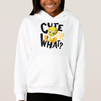 A person is wearing a white hoodie with a cartoon character on it. The character has a yellow face with black eyes and a wide smile, and the text 'CUTE OR WHAT?' is written in black letters above and below the character. The hoodie is zipped up, and the person is wearing black pants. | TWEETY\xe2\x84\xa2- Cute Or What? | 50c706c86af4df0fbe457304e993c5bff248f8df8fd9530d0dbabe198eaf9349 | 001065734368 | 0 | 0 | 54 | 4 | 0 | 0 | |