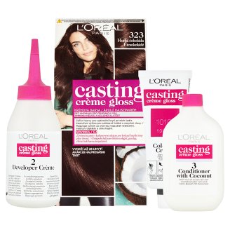 A collection of L'Or\xc3\xa9al hair care products is displayed. The products include a pink bottle of Casting Cream Gloss, a white bottle of Casting Developer Cream, and a white bottle of Casting Conditioner with Coconut. The products are arranged in front of a box with the L'Or\xc3\xa9al logo and the number 323. A wom... | image 2 of L'Or\xc3\xa9al Paris Casting Cr\xc3\xa8me Gloss 323 Dark Chocolate Care Hair Colorant | 24a9645ca7edb1df1d20d71d42f9a794600dddb7b7c88f7f5530be342741f202 | 001065734358 | 0 | 0 | 70 | 14 | 0 | 0 | |