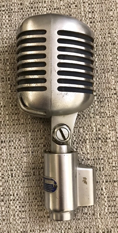 A vintage microphone with a shiny silver finish and a black grill is lying on a textured beige surface. The microphone has a circular base with a blue label and a silver screw on the side. | Vintage Shure 556S Unidyne Dynamic Microphone | fb18ee1feaaaccbe1dae07ddcce6d159c77cbd8b64ba6f66c88f744e2463fcfb | 001065734540 | 0 | 0 | 36 | 6 | 0 | 0 | |