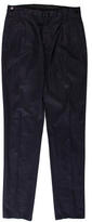 A pair of black denim shorts with a zipper fly and button closure. The shorts have a relaxed fit with a straight cut and are made of a thick, heavy denim fabric. They have a pocket on the left side and a small buttoned pocket on the right side. The shorts are unadorned and have a plain, dark blue color. | Lanvin Tapered Pleated Trousers | 4566c0d4b8aed795feffa12b8efdd119d20b2853f851c1e34c286d4d290e047c | 001065734557 | 0 | 0 | 60 | 4 | 0 | 0 | |