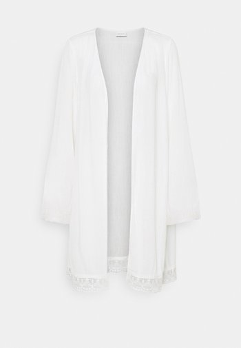 A white cardigan with a V-neckline and button details is displayed against a white background. The cardigan has a relaxed fit and features lace trim at the cuffs and hem. | VIWINNER FESTIVAL KIMONO - Chaqueta fina - snow white | 0df4a5a1ae7dae202a53cf254d79670aaa98c6f93fc31031d3a7a65fd04572d4 | 001065734514 | 0 | 0 | 30 | 9 | 0 | 0 | |