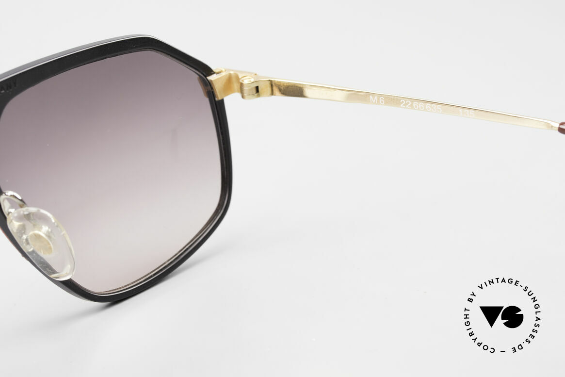 A pair of sunglasses with a black frame and gold accents is displayed against a white background. The sunglasses have a reflective lens that shows a pattern of concentric circles. The brand name 'VINTAGE' is visible at the bottom right corner of the image. | Alpina M6 Rare 80's Vintage Sunglasses, Size: medium, Made for Men and Women | bce6a45ba20d1d2c690276fc9db99572dd9511fdcd91a724b2d6da109681ebbb | 001065734467 | 0 | 0 | 44 | 13 | 0 | 0 | |