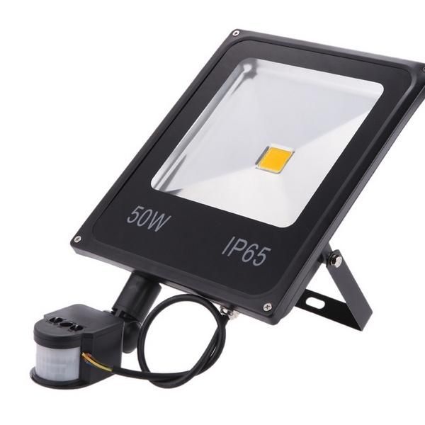 A black LED light fixture with a clear lens and a yellow LED light source is shown against a white background. The fixture has a label with '50W' and 'IP65' printed on it, indicating its power rating and waterproofing level. There is a black cable with a connector attached to the bottom of the fixture. | PIR Motion Sensor Automatic Switch on LED Floodlight 10W 20W 30W 50W Outdoor LED Security Lights Waterproof 85-265V | 12b3e3ad315c6aa4cedf9dd6369787ae8ca42aee2c9617fc06c2a0b40357fd7d | 001065735890 | 0 | 0 | 55 | 18 | 0 | 0 | |